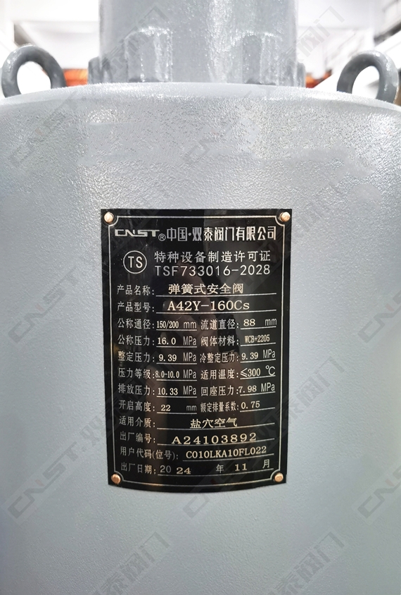 雙泰A42Y-160Cs DN150/200封閉全啟式安全閥,遵循規范、標準:GB/T12241、GB/T12242、GB/T12243,適用于高壓、腐蝕性介質場合。是一種耐腐蝕性介質專用安全閥。主要用于海水、高氯離子環境等領域,是受壓設備、容器或管路上的超壓保護裝置。閥蓋和閥體WCB本體材質,內腔噴涂2205材質,具有優異的耐腐蝕耐沖刷特性。